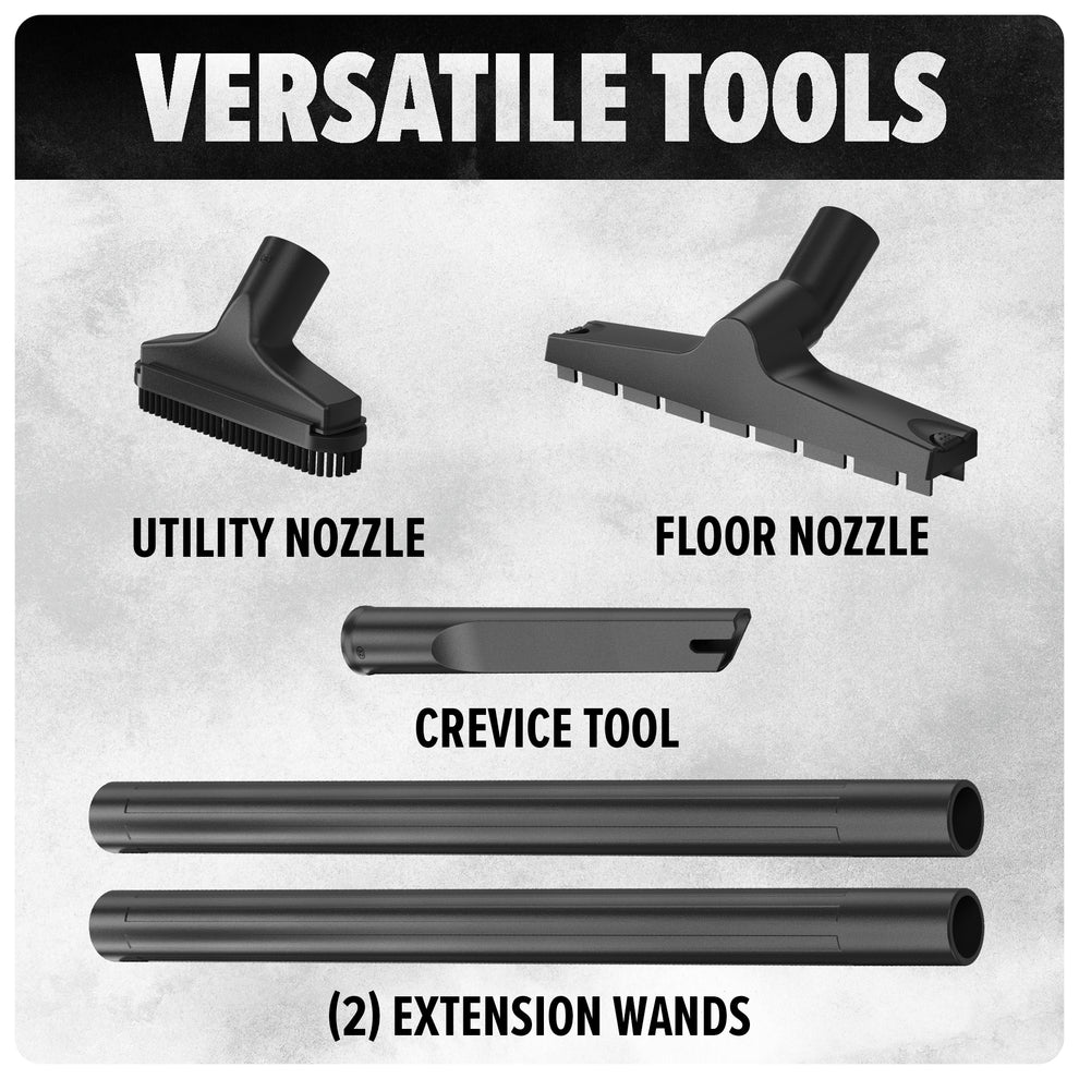 Dirt Devil Wet Dry Vacuums are the project upgrade you’ve been looking for. With 5-gallon, 6-gallon and 8-gallon sizes to choose from, finding the perfect fit for your cleaning needs is easy. A variety of tools makes cleaning both wet and dry messes a breeze, and an easily rinsible filter ensures powerful performance with every job. Get your Dirt Devil Wet Dry Vacuum today!