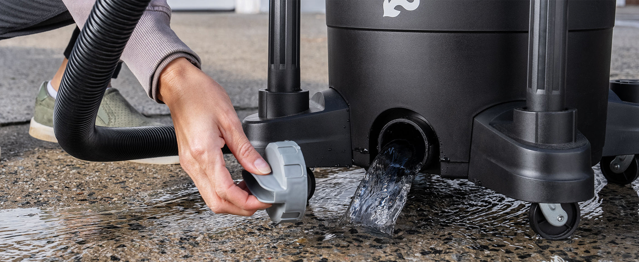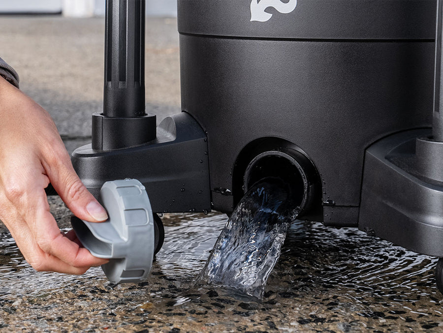 Simply remove the top to empty dry messes or open the drain port to empty wet messes.