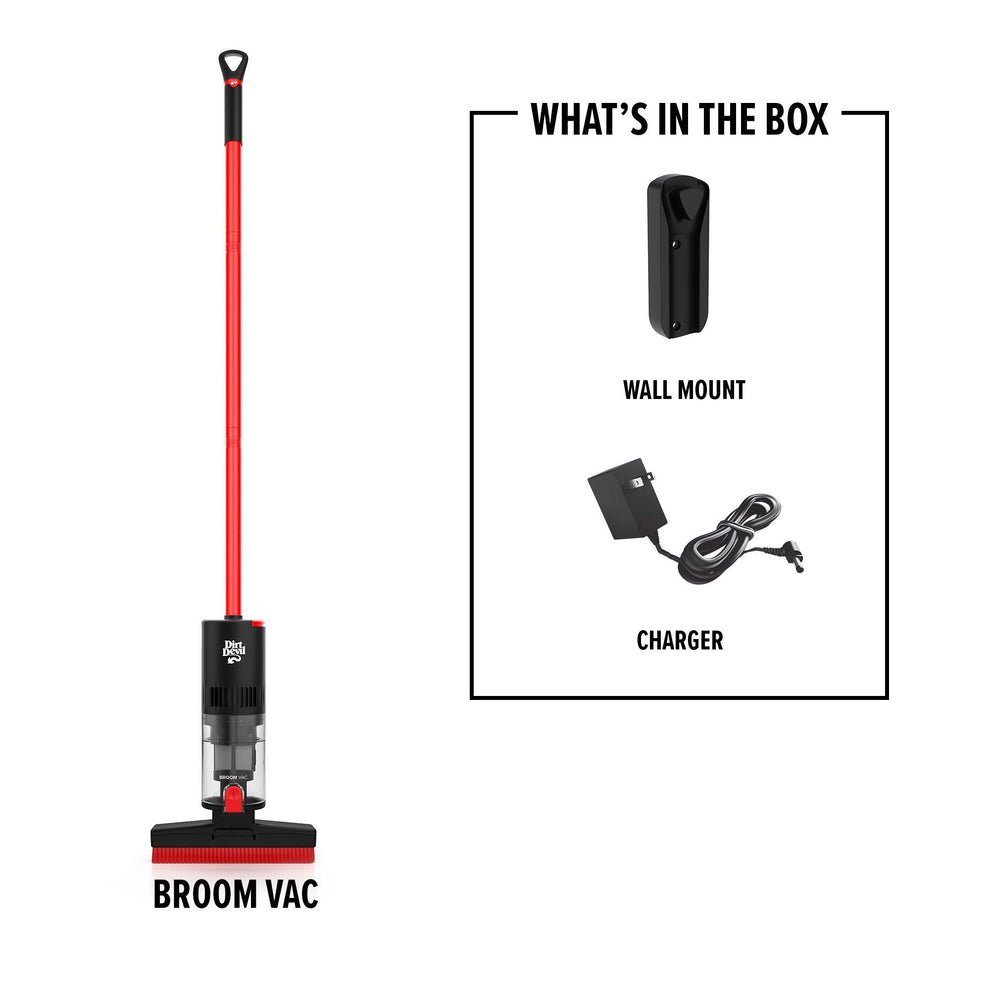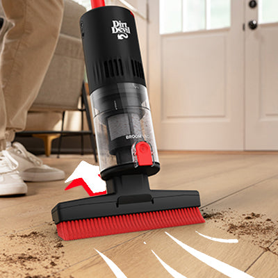 The Broom Vac features a bottom release dirt cup and a fully removable separator. We recommended regular cleaning of the separator for sustained performance. Simply detach the dirt cup and pull out the separator. Wipe with a clean cloth to remove any stuck on debris.