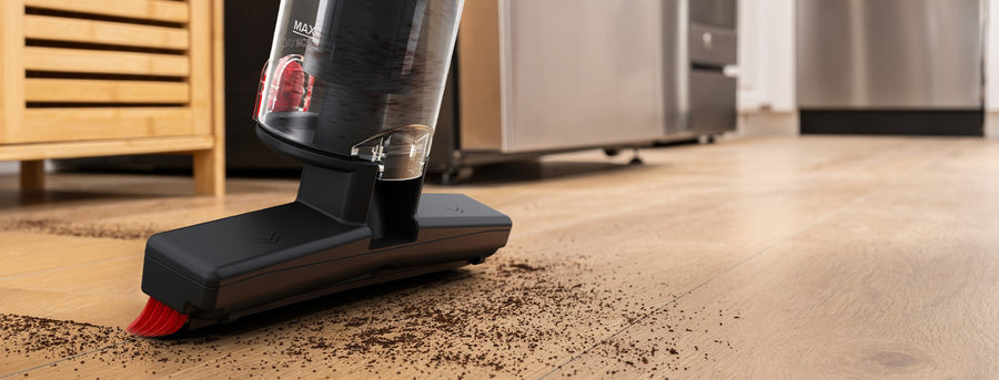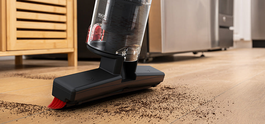 Vacuums up debris small and large – like coffee grounds, cereal & more.