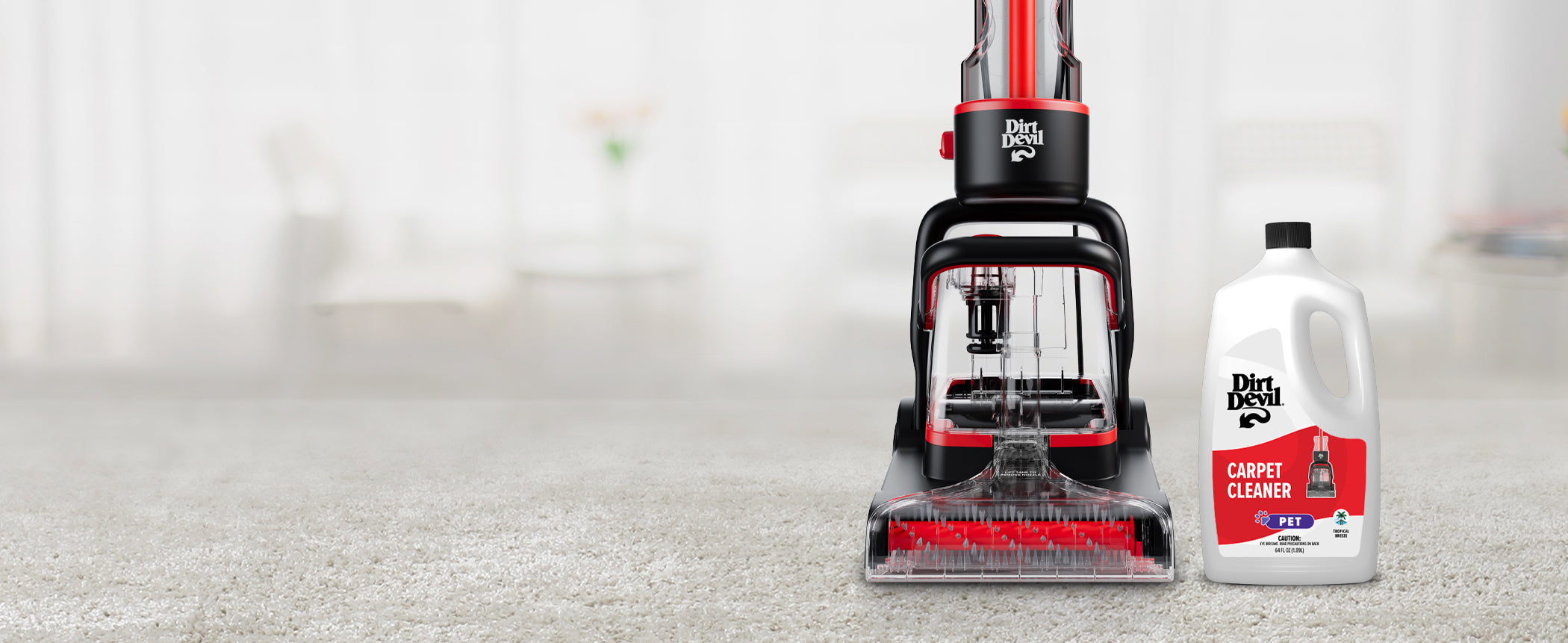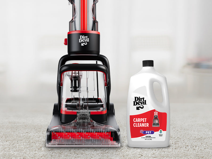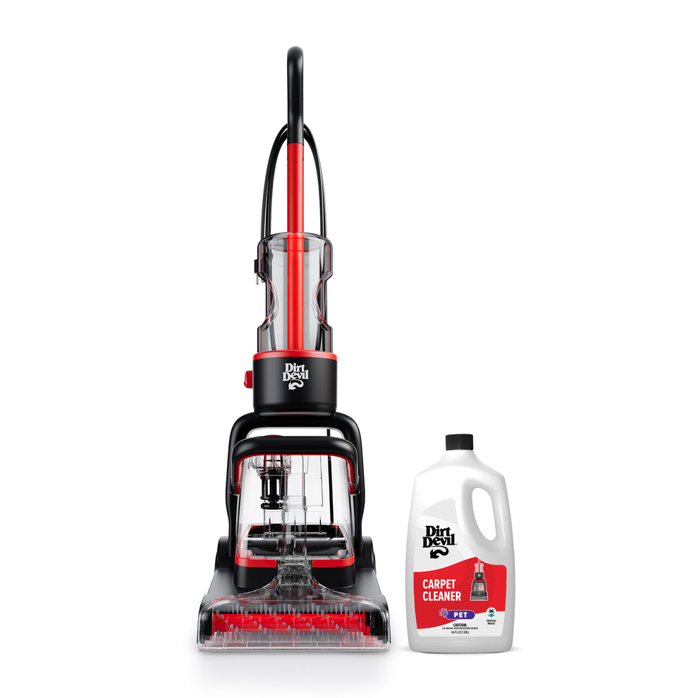 Introducing the Dirt Devil Carpet Cleaner, simplifying carpet cleaning with powerful extraction and a user-friendly design. Experience quick refreshes with the Quick Clean Mode, and enjoy the convenience of easily removable water tanks for effortless cleanup.
