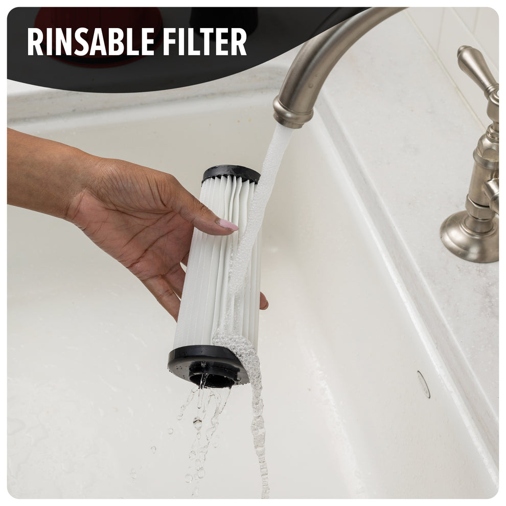 - Consistently powerful performance on carpets and hard floors with a rinsable filter that will help extend the life of your vacuum