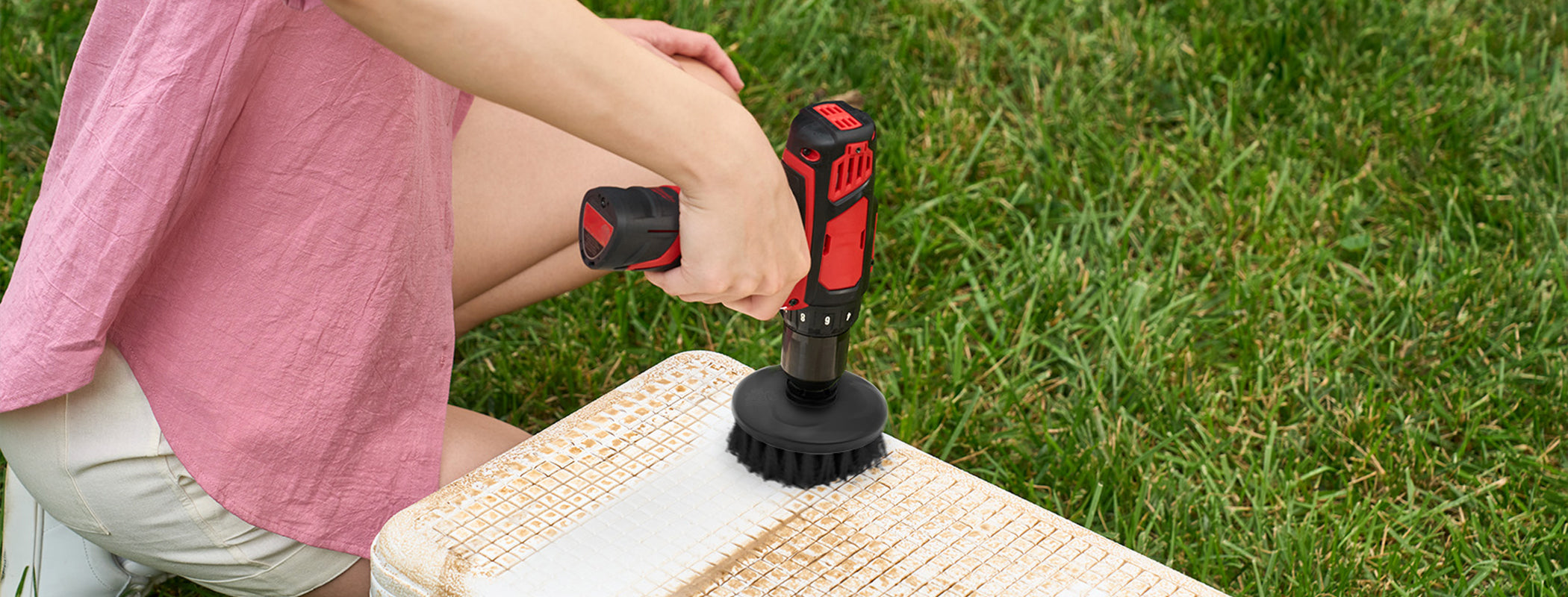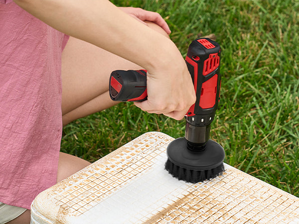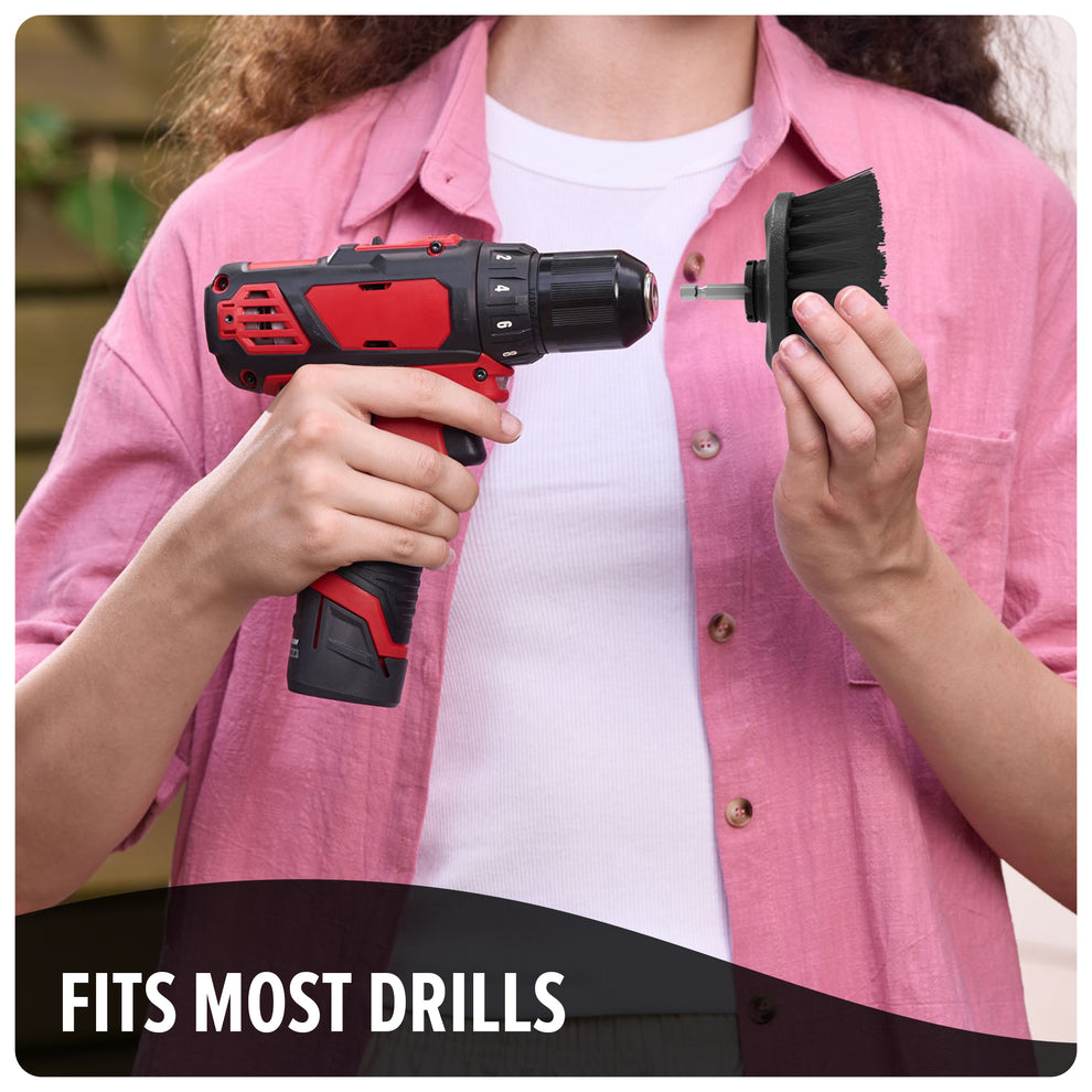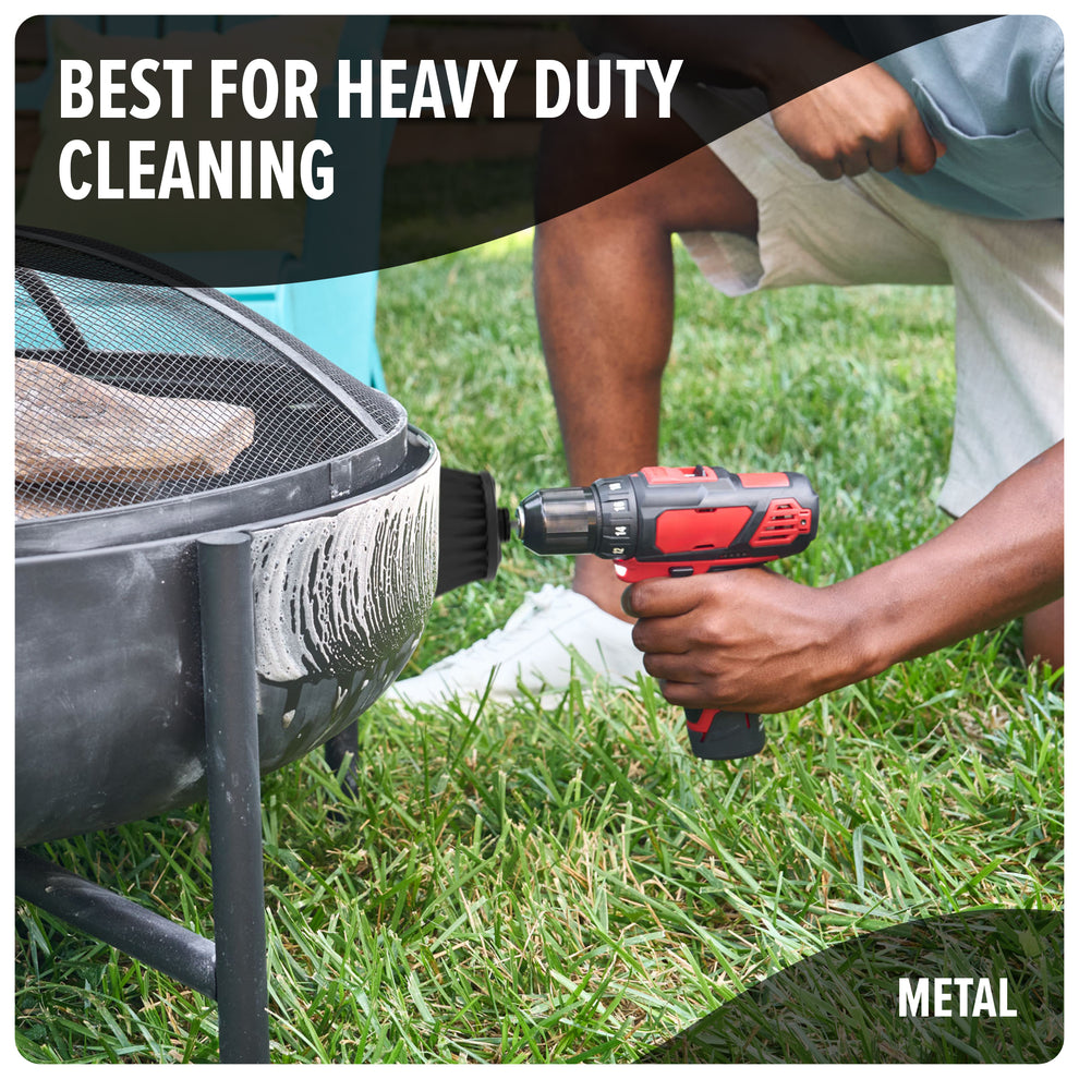 Make cleaning easier – simply attach the 2” or 3.5” hard brush to a compatible powered drill.