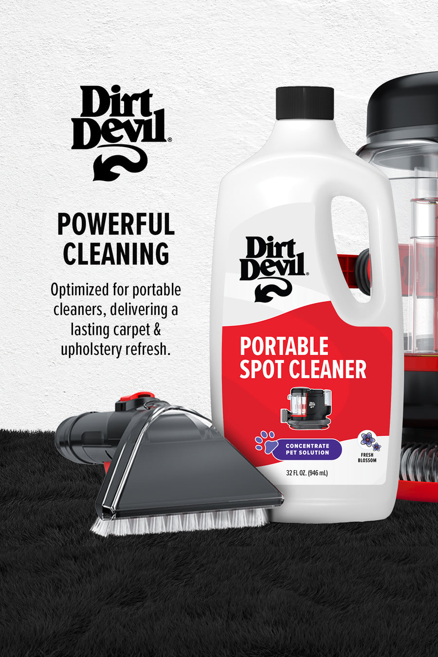 - Premixed for use in portable spot cleaners like the Dirt Devil Portable Carpet & Upholstery Spot Cleaner