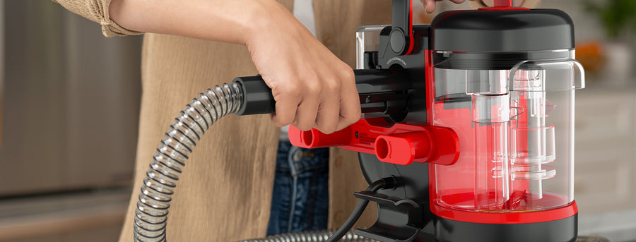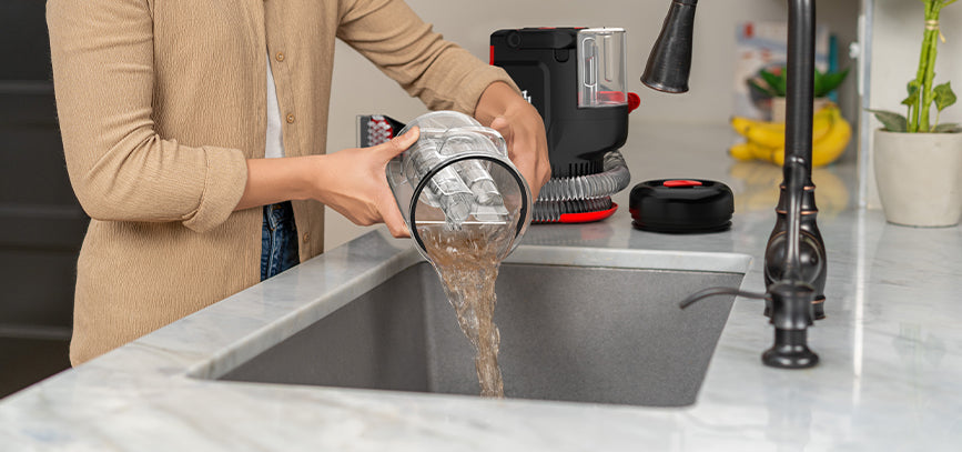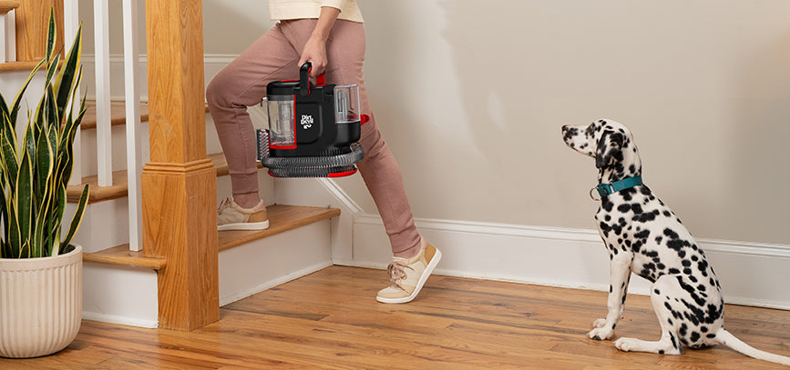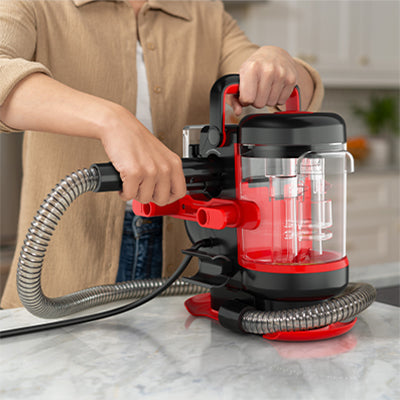 This small but mighty spot cleaner is the companion you need for removing stubborn stains. Loosen and lift away accidental spills, pet messes and set-in spots with this compact cleaner, designed to fit into tight spaces. Attach the flexible, kink-free hose for easy maneuverability and added reach. Post cleanup is a breeze with the built-in hose rinse & removeable lid. Simply flush the hose with water to remove any residual dirt and debris, then empty your tanks to dry and store away until the next use.