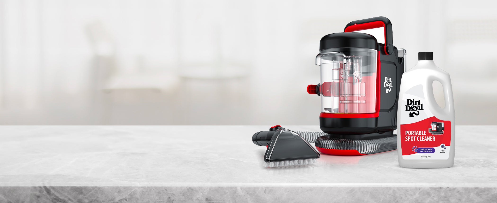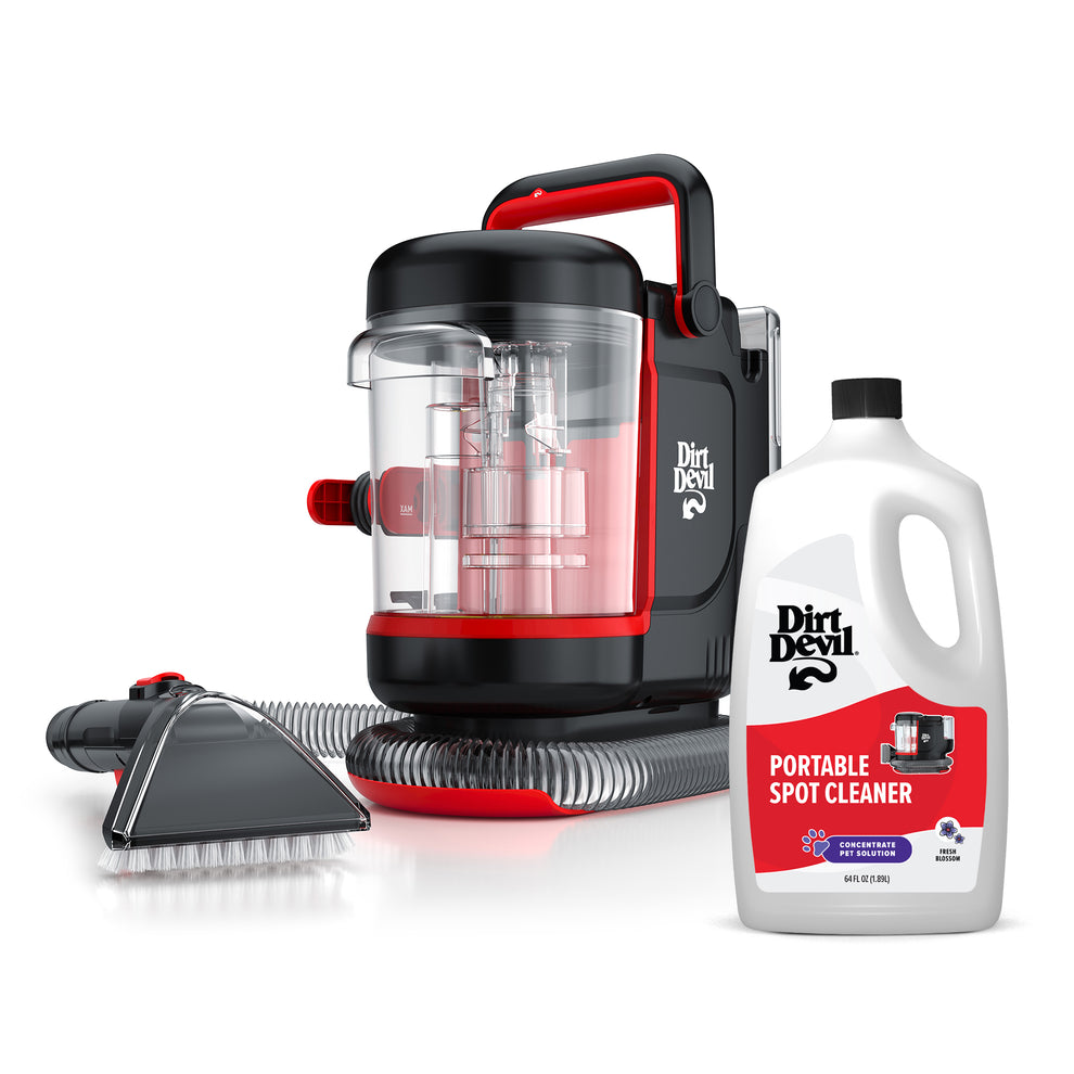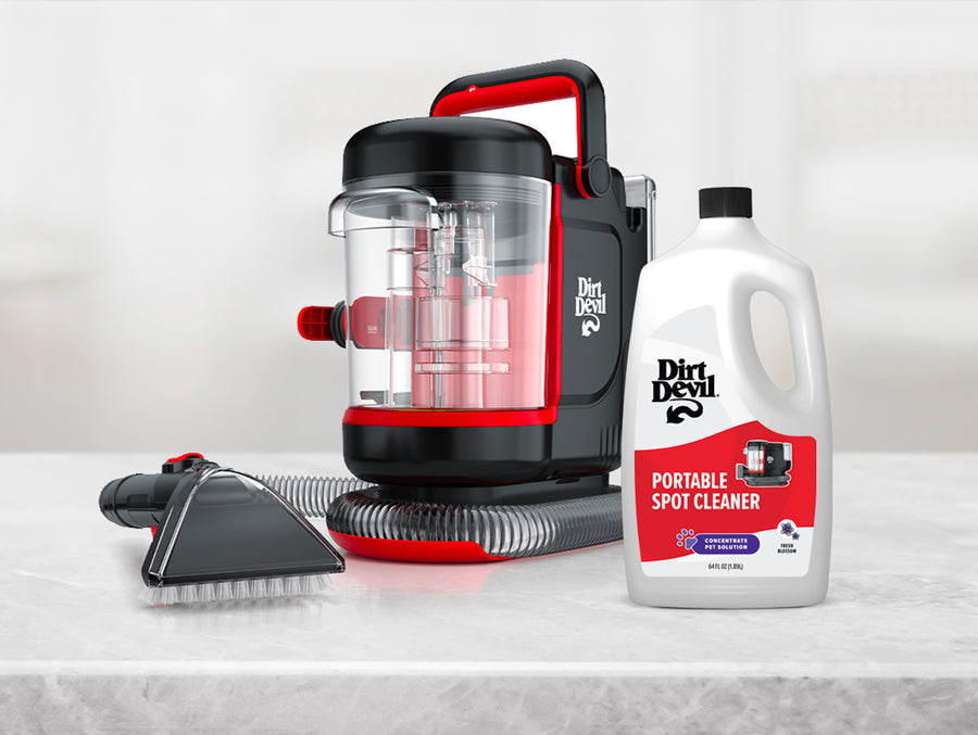 This small but mighty spot cleaner is the companion you need for removing stubborn stains. Loosen and lift away accidental spills, pet messes and set-in spots with this compact cleaner, designed to fit into tight spaces. Attach the flexible, kink-free hose for easy maneuverability and added reach. Post cleanup is a breeze with the built-in hose rinse & removeable lid. Simply flush the hose with water to remove any residual dirt and debris, then empty your tanks to dry and store away until the next use.