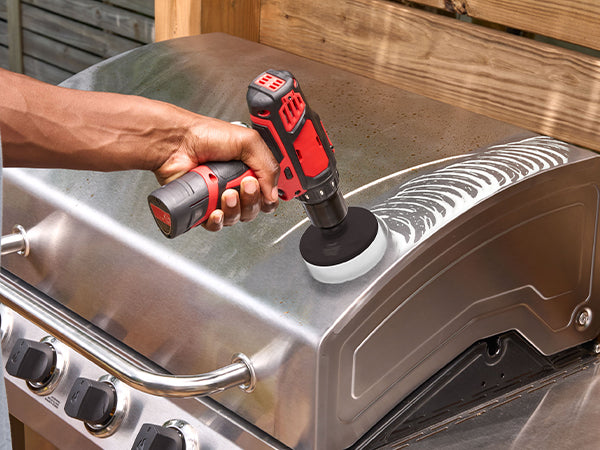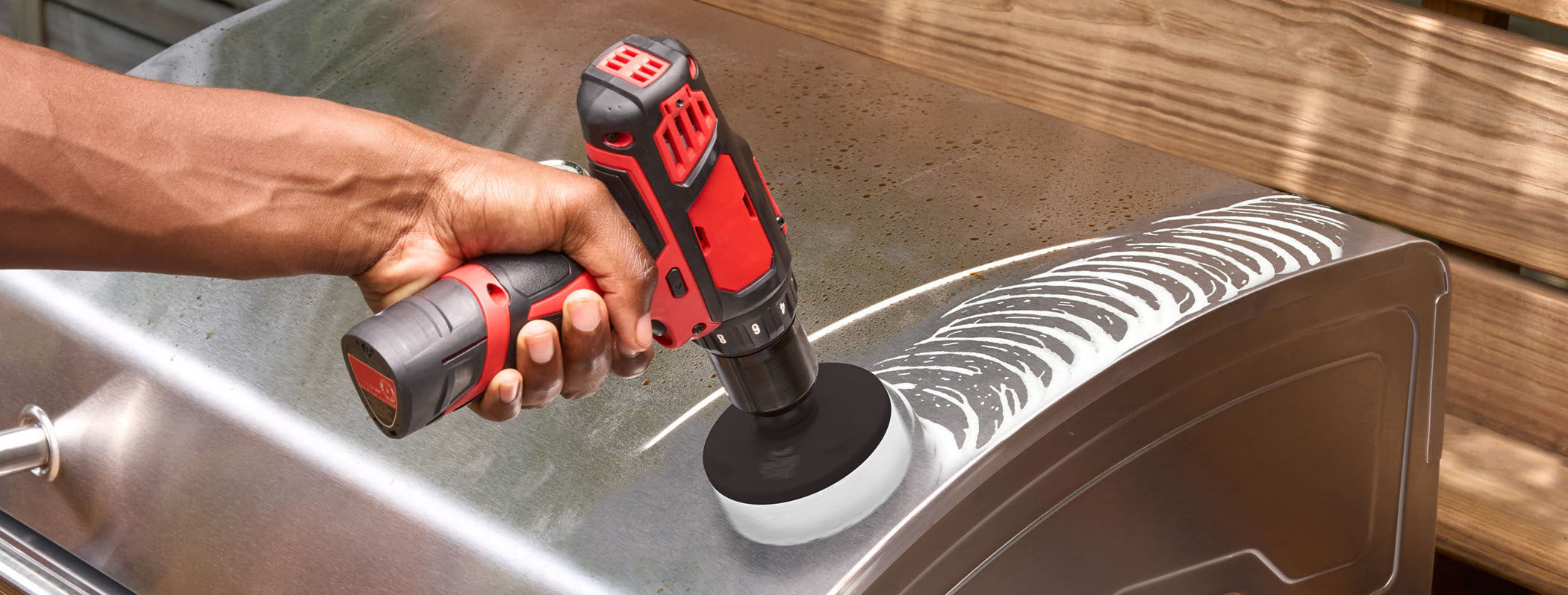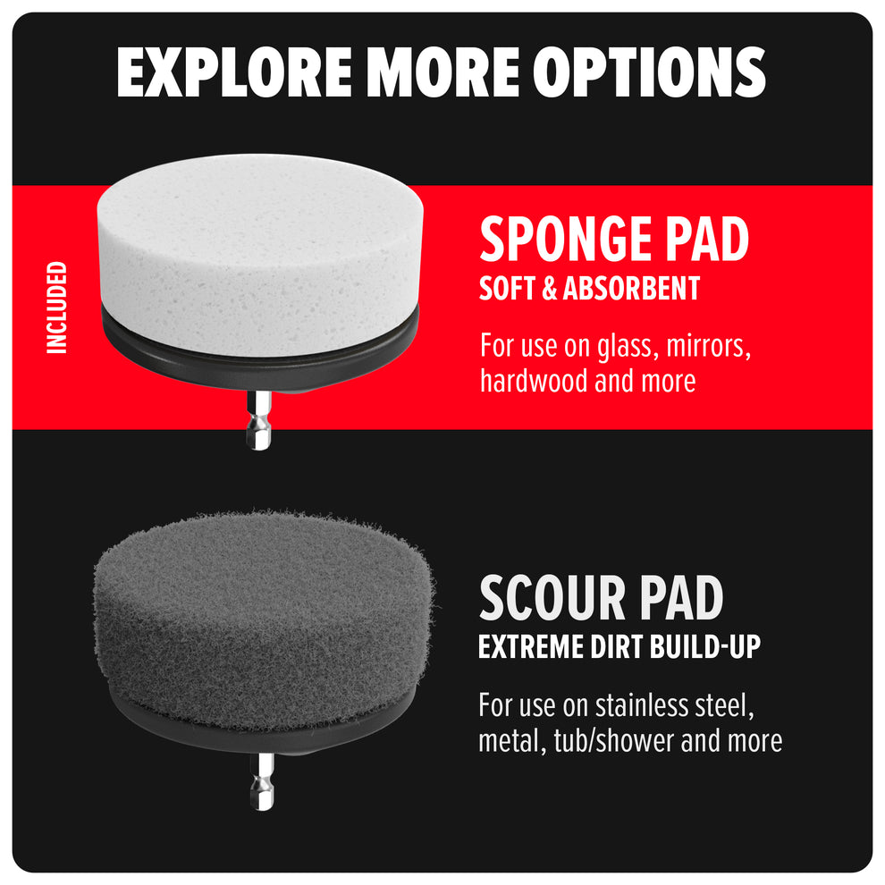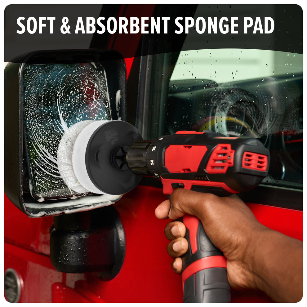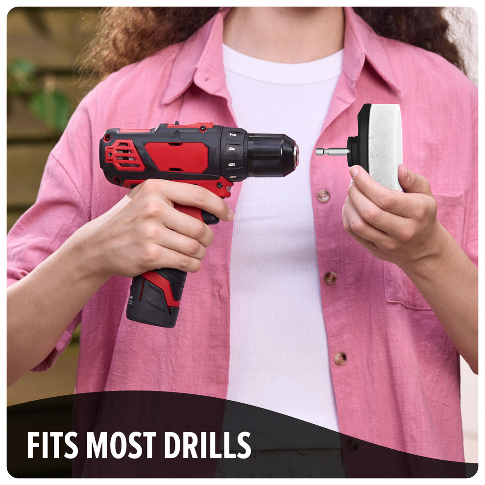 Make cleaning easier – simply attach the 3.5” foam pad to a compatible powered drill.