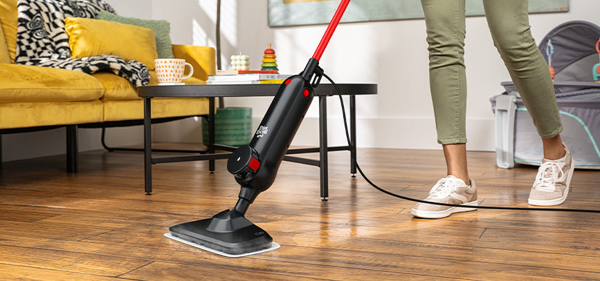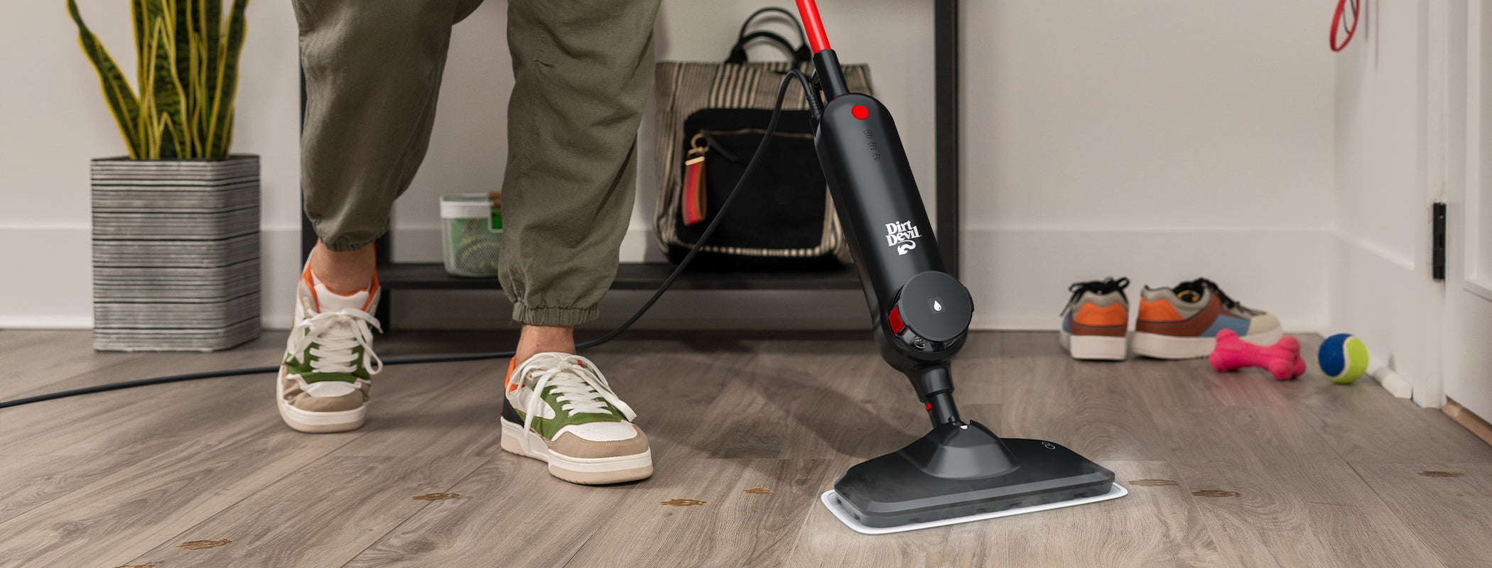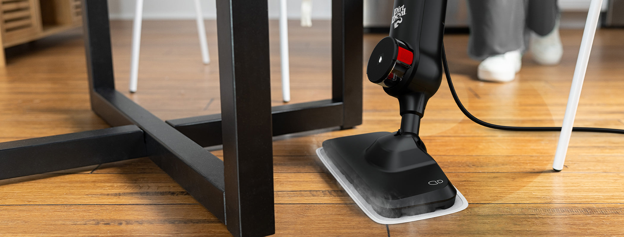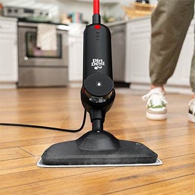 Use the power of steam to achieve a deep clean with Dirt Devil’s Steam Mop. With three steam settings, select the perfect amount of steam for your hard floor cleaning needs. Heats up in 30 seconds or less and is safe for use on all sealed floors like hardwood, tile, laminate, stone, vinyl and more. The 180 degree swivel head easily maneuvers around the home and cleans those hard-to-reach areas. Using demineralized water is recommended to help keep the Steam Mop running smoothly. Glide over floors and blast away dirt and grime for a refreshed and clean look using the included microfiber cleaning pads.